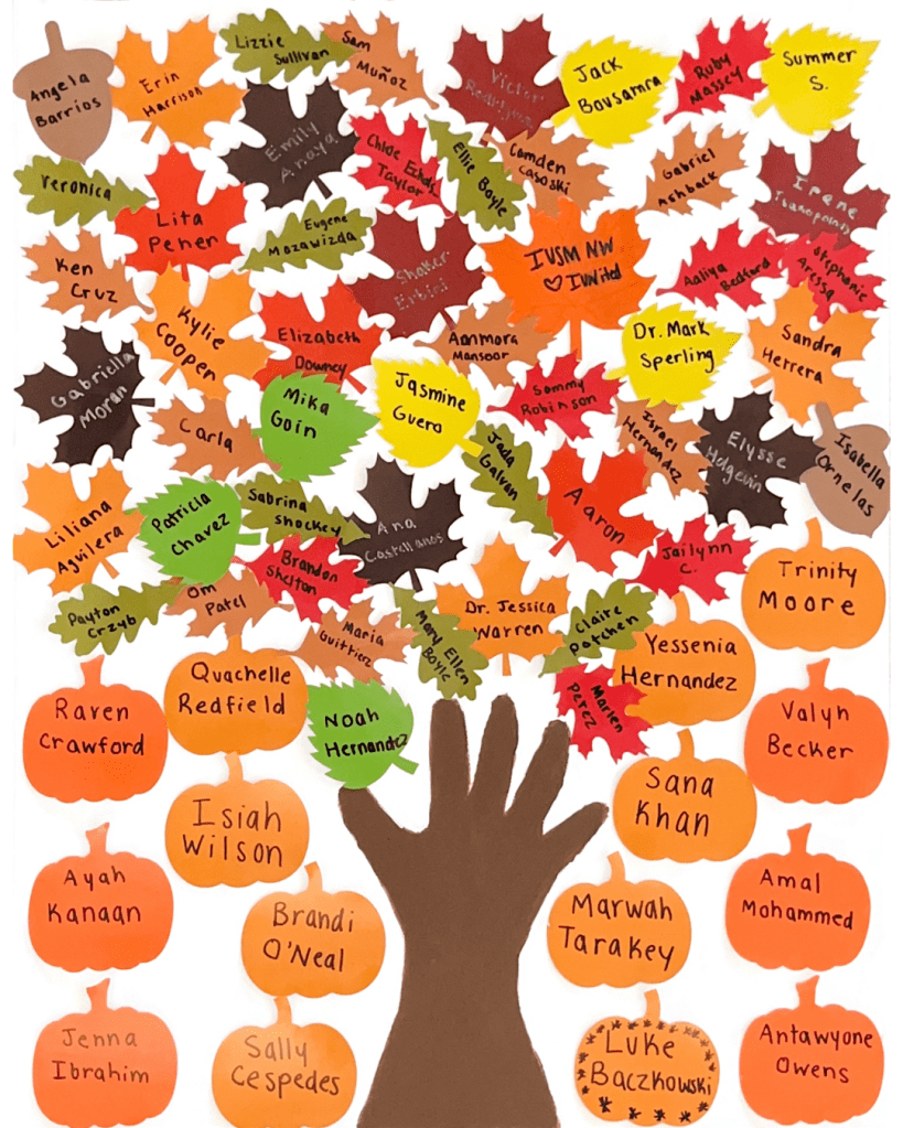 Our Giving Tree graphic, featured on our social media, recognizes every individual who played a role in this event. The pumpkins and acorns represent students who volunteered their time, while the leaves symbolize those who supported us through purchases or donations. Every name and symbol reflects someone who helped bring this initiative to life, together forming a community of kindness and impact.